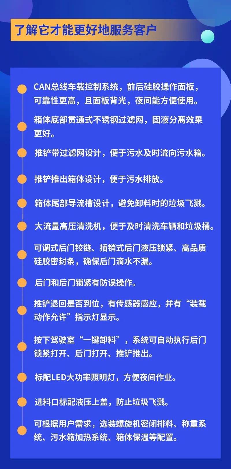 6.垃圾箱與后門總成之間密封性好 垃圾箱與后門總成之間采用特制加強型橡膠條密封,密封性好,杜絕了二次污染.